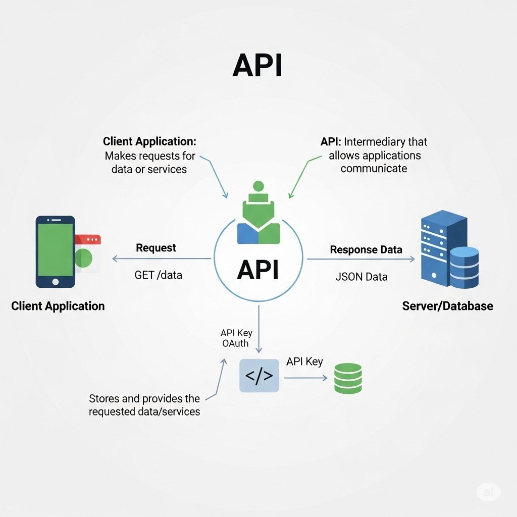 API = Application Programming Interface. It is a way of allowing you to access the data from another application or a way of applications to communicate with each other.